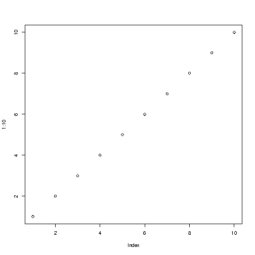 如何使用 R 轻松创建一个图形,在 x 轴和 y 轴上都有从 1 到 10 的数字: